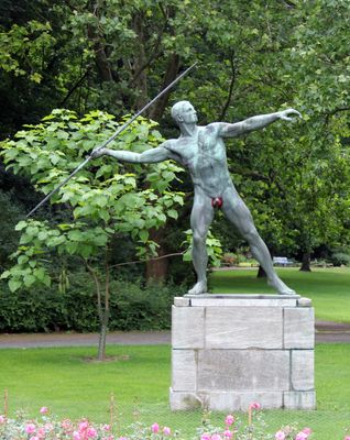 Javelin thrower, sculpture by Karl Möbius in the Volkspark Wilmersdorf in Berlin, Germany