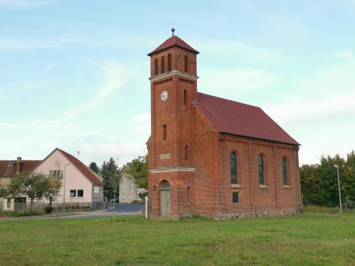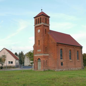 Dorfkirche mit Kriegerdenkmal, denkmalgeschützte Kirche und Kriegerdenkmal in Mützdorf, Brandenburg