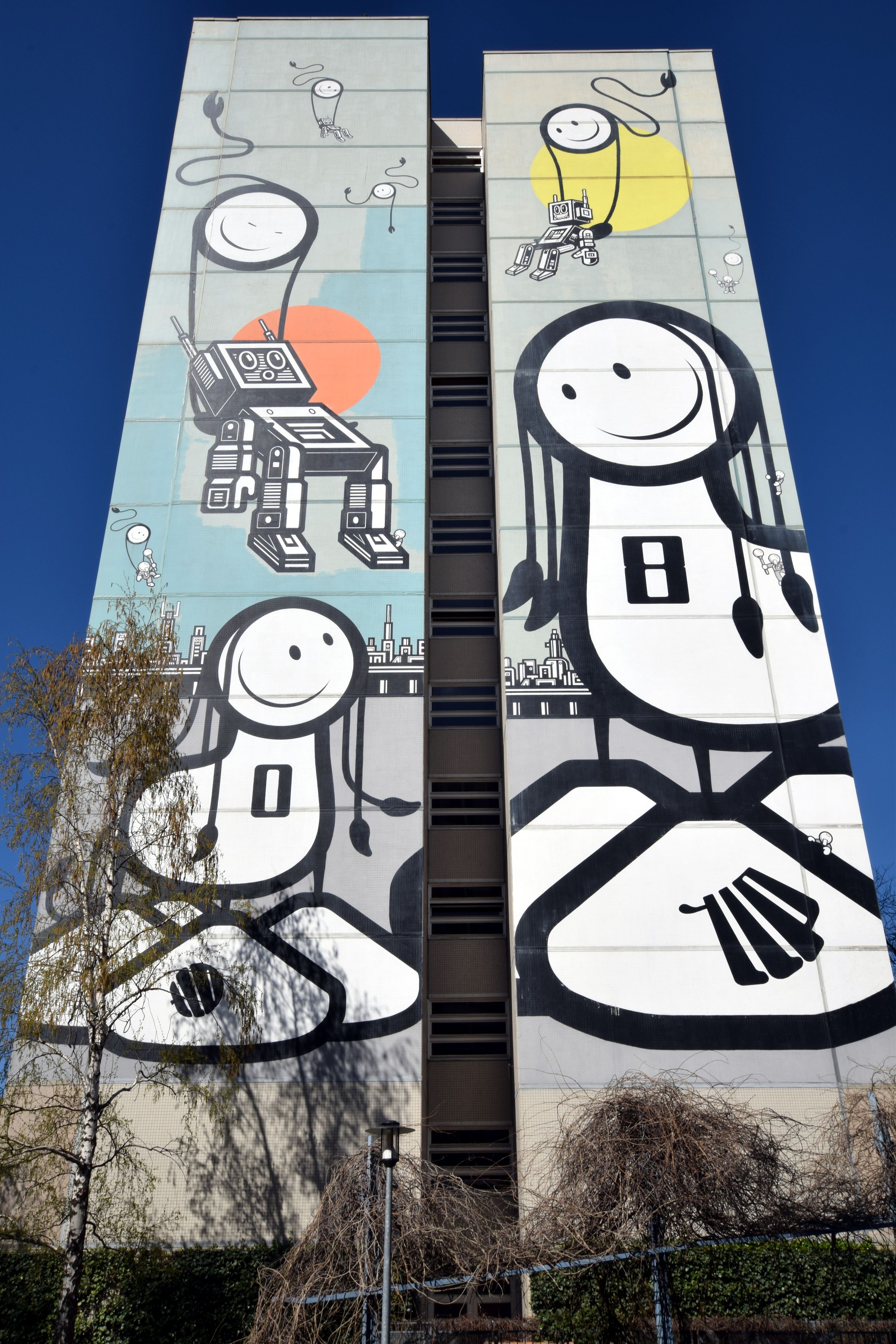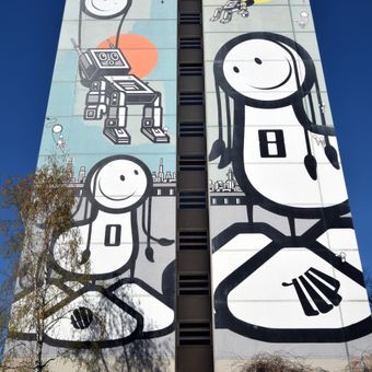 Mural, mural by The London Police in the ArtPark Tegel in Berlin, Germany