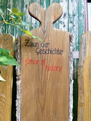 Fence of history in Steinbrueck, Fence of history for the Scholl family in the birthplace of Robert Scholl, the father of the Scholl siblings, in Steinbrueck near Geisselhardt
