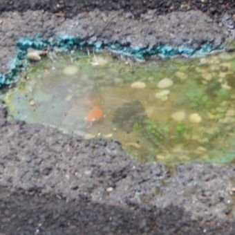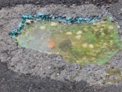 Gold fish in a pothole, sculpture in Mönchengladbach