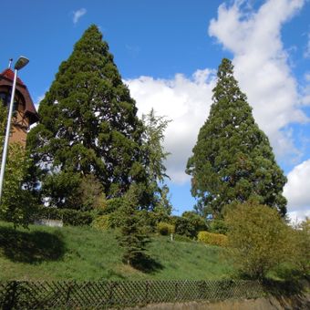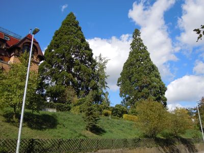 2 Mammutbäume, Natural monument in Reutlingen, Baden-Württemberg, Germany