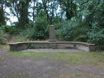 El Eichendorffbank es un banco semicircular de piedra con un obelisco central que muestra versos del poema 'Bei Halle' en las colinas Klausberge.