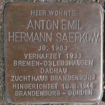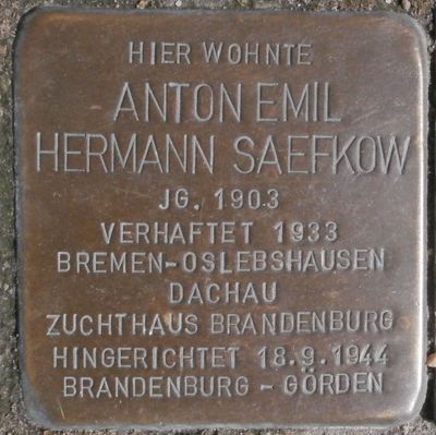 Stolperstein en memoria de Anton Hermann Emil Saefkow, Stolperstein in Hamburg-Neustadt