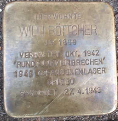 Stolperstein en memoria de Willi Böttcher, Stolperstein in Hamburg-Harburg