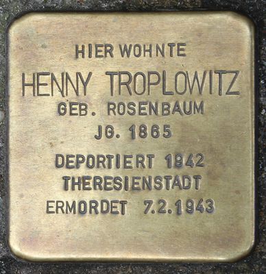 Stolperstein en memoria de Henny Troplowitz, Stolperstein in Hamburg-Harburg