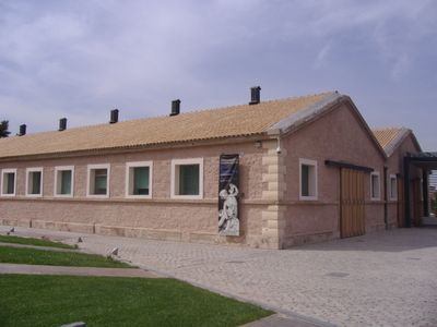 La Gliptoteca Nacional ocupa dos edificios restaurados de antiguas caballerizas reales en el Parque del Ejército Helénico, con galerías interiores y área de esculturas exterior.