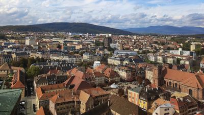 La ciudad funciona como centro de transporte, conectando Francia con Suiza y Alemania mediante redes ferroviarias y carreteras principales.