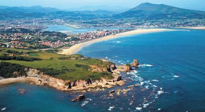 Hendaya se extiende a lo largo de la costa atlántica en la desembocadura del río Bidasoa, marcando la frontera entre Francia y España.