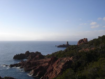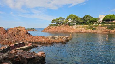 El pueblo de Agay, en la sección este, conserva su propio carácter, con rocas rojas del macizo del Estérel que caen directamente al mar. La Île d'Or en la parte occidental inspiró el cómic de Hergé La isla negra de la serie de Tintín.
