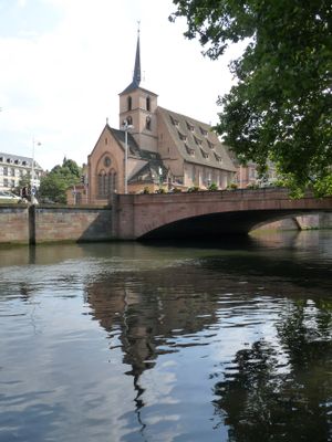 Saint-Nicolas Church, Iglesia gótica junto al río Ill en Estrasburgo, Francia