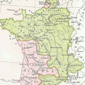 Guyena se estableció como región distinta en 1259 a través del Tratado de París, cuando el rey francés reconoció el control inglés del territorio como feudo. Este arreglo persistió durante siglos hasta que los ejércitos franceses gradualmente recuperaron la tierra.