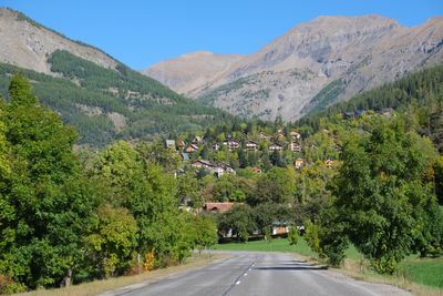 La carretera D908 proporciona acceso a la comuna a través del terreno montañoso, conectando el pueblo con Barcelonnette al norte y Colmars al sur.