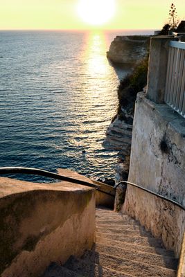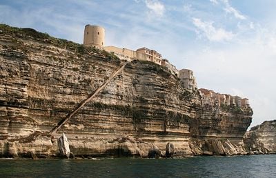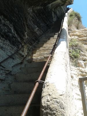 La escalera, declarada Monumento Histórico francés desde 1994, conecta la ciudad alta de Bonifacio con una fuente natural en la cueva de Saint-Barthelemy.