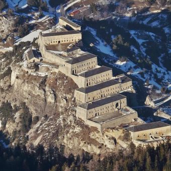 La fortaleza consta de ocho edificios integrados en la ladera de la montaña a 1350 metros de altura sobre el Valle de Maurienne.