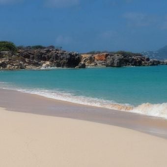 La isla de Tintamarre, de 100 hectáreas, presenta playas de arena blanca, acantilados rojos y aguas color turquesa a 4 kilómetros de Saint-Martin.
