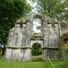 Los restos de piedra de la Abadía Notre-Dame de Carnoët se elevan en la orilla derecha del río Laïta, rodeados del bosque de Carnoët.