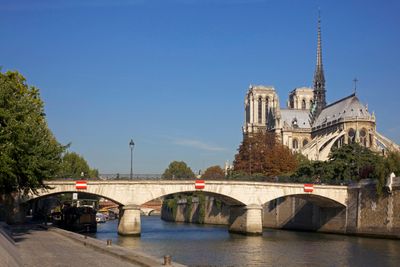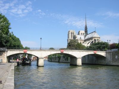 El Pont de l'Archevêché se extiende 68 metros sobre el río Sena, uniendo el distrito 4 con el barrio Saint-Victor mediante tres arcos de piedra.