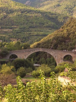 El Pont du Diable atraviesa el río Jaur con su arco central de 32 metros, siendo el segundo puente más grande de su tipo en Europa.