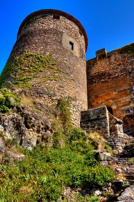 La construcción de la fortaleza comenzó en 1170 sobre un castrum galo-romano del siglo II, resistiendo posteriormente asedios durante la Guerra de los Cien Años.