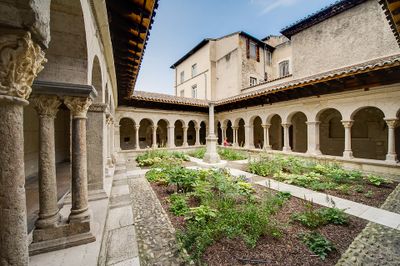 La abadía de Saint-André-le-Bas presenta un claustro románico completo con capiteles decorados con motivos vegetales inspirados en diseños corintios.