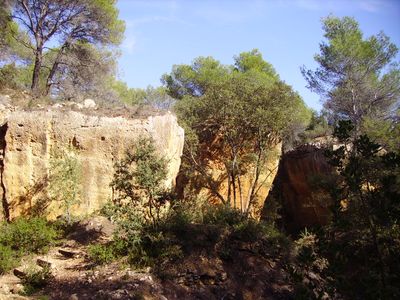 Las Canteras de Bibémus presentan formaciones de piedra naranja y paredes rocosas distribuidas en siete hectáreas de paisaje mediterráneo.