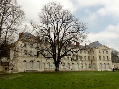 El castillo del siglo XVIII presenta una arquitectura francesa clásica con diseño simétrico, grandes ventanas y un pabellón central de tres pisos.