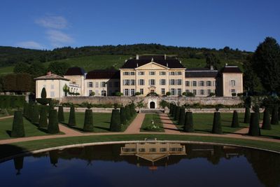 El complejo Château de La Chaize incluye una bodega de 108 metros de largo y se extiende por 400 hectáreas en la región de Beaujolais.