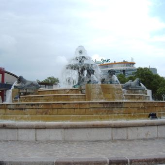 La fuente refleja los principios arquitectónicos franceses mediante su construcción en bronce y su integración en un espacio público recreativo.