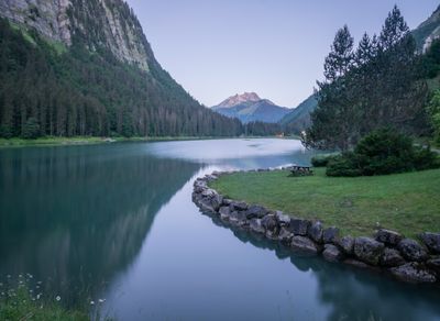 Lac de Montriond, Lago glacial en Montriond, Francia.