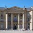 El edificio del ayuntamiento presenta una fachada neoclásica simétrica con detalles arquitectónicos elaborados y grandes ventanales junto al Panthéon.
