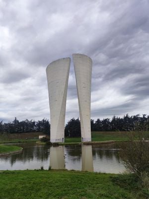 Dos torres de agua monumentales, diseñadas por el escultor Philolaos Tloupas, se alzan a 52 y 57 metros como ejemplos de innovación arquitectónica.