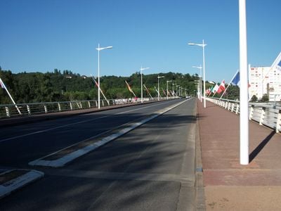 El Pont de l'Europe se extiende 256 metros sobre el río Allier, conectando los municipios de Vichy y Bellerive-sur-Allier con dos carriles de tráfico.