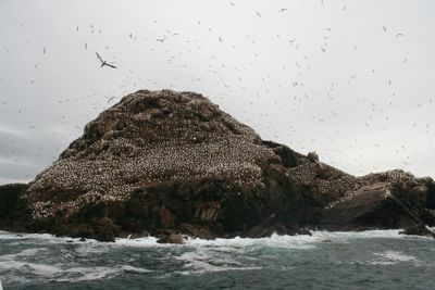 La isla Rouzic contiene el único sitio de anidación francés para alcatraces y mantiene una población significativa de frailecillos y alcas comunes.