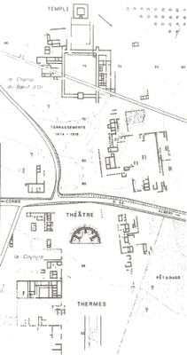 El complejo arqueológico se extiende por 80 hectáreas a lo largo del valle del río Ancre, con termas, teatro y múltiples estructuras auxiliares.