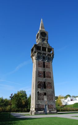 La estructura de hormigón armado incorpora elementos Art Déco de ladrillo tradicional típicos de las torres campanario del norte de Francia.