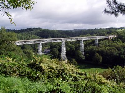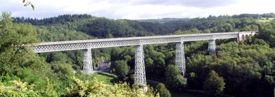 El Viaduc de Busseau-sur-Creuse se extiende 338.7 metros sobre el río Creuse, con estructuras metálicas y pilares de mampostería que alcanzan 56.5 metros de altura.