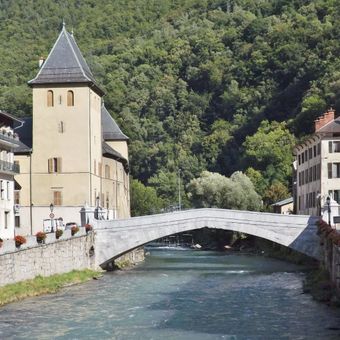 Vieux-Pont, Puente histórico de piedra en Moûtiers, Francia