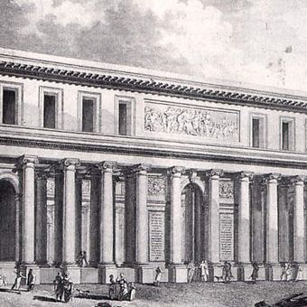 El relieve central originalmente representaba a Luis XV pero fue transformado durante la Revolución Francesa en una alegoría de la Caridad. Este cambio artístico revela cómo el edificio mismo se adaptó a los cambios políticos radicales de la época.