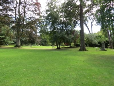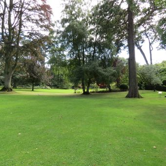El jardín público ocupa 2,6 hectáreas y alberga 400 árboles, incluyendo Sophora japonica, Secuoyas gigantes y Koelreuteria paniculata en sus terrenos paisajísticos.