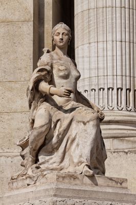 La estatua forma un conjunto complementario con otra escultura que representa el Arte Industrial, en esquinas opuestas del Grand Palais.