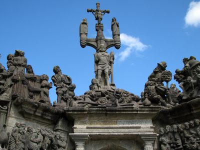 Calvary at Guimiliau, group of religious statues in Brittany, France