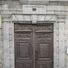 El edificio presenta una puerta de roble del siglo XVIII con dos paneles de apertura central, enmarcada por pilastras dóricas con entablamento decorado.