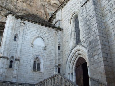 La Basílica Saint-Sauveur se eleva sobre la cripta de Saint-Amadour, presentando elementos arquitectónicos románicos y góticos en su construcción de piedra caliza.