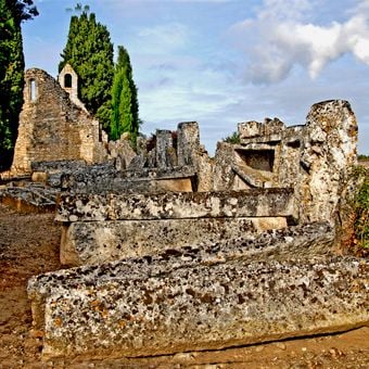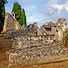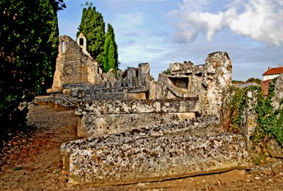 Los muros del cementerio están formados por antiguas cubiertas de sarcófagos colocadas verticalmente como piedras erguidas desde el siglo XVIII.