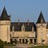 El Château de Bort presenta dos alas de granito en forma de L, con dos torres redondas decoradas con matacanes en sus cimas.