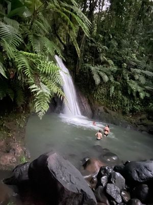 hermosa cascada pero completamente arruinada por todos los bañistas que chapotean en ella ...