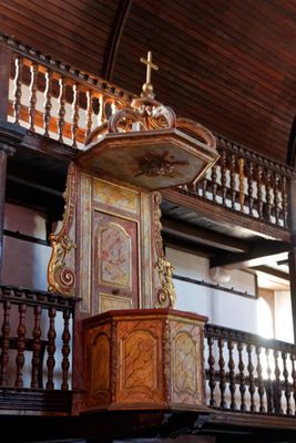 Púlpito para predicar en Villefranque, púlpito para predicar en la iglesia de San Juan el Bautista en Villefranque, Pirineos Atlánticos, Francia
