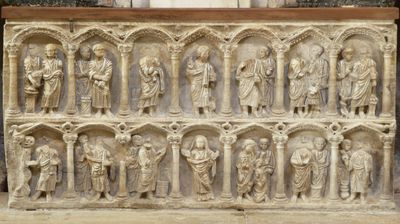 Sarcófago paleocristiano con doble registro de arcos