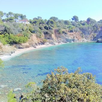 La ubicación de la playa dentro del Parque Nacional de Port-Cros et Porquerolles permite observar especies marinas protegidas.